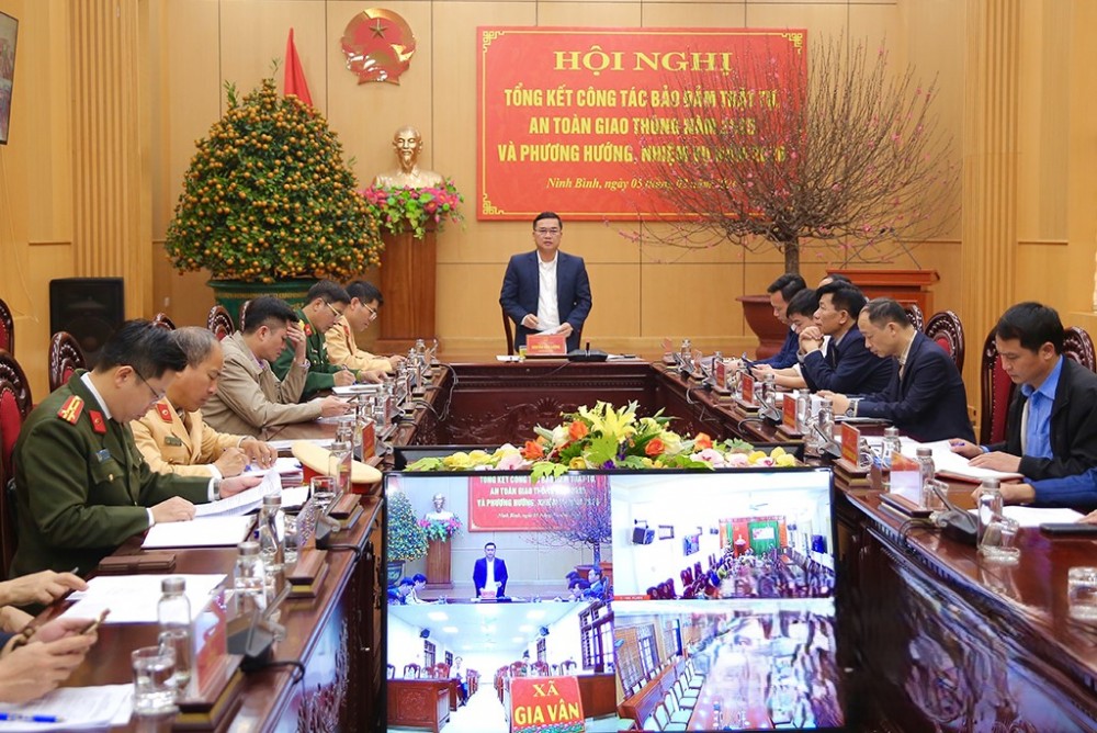 Sáng 5/2, UBND tỉnh Ninh Bình tổ chức hội nghị tổng kết công tác bảo đảm trật tự an toàn giao thông (TTATGT) năm 2025, triển khai phương hướng, nhiệm vụ năm 2026. Hội nghị được kết nối trực tuyến tới 129 điểm cầu xã, phường trên toàn tỉnh.