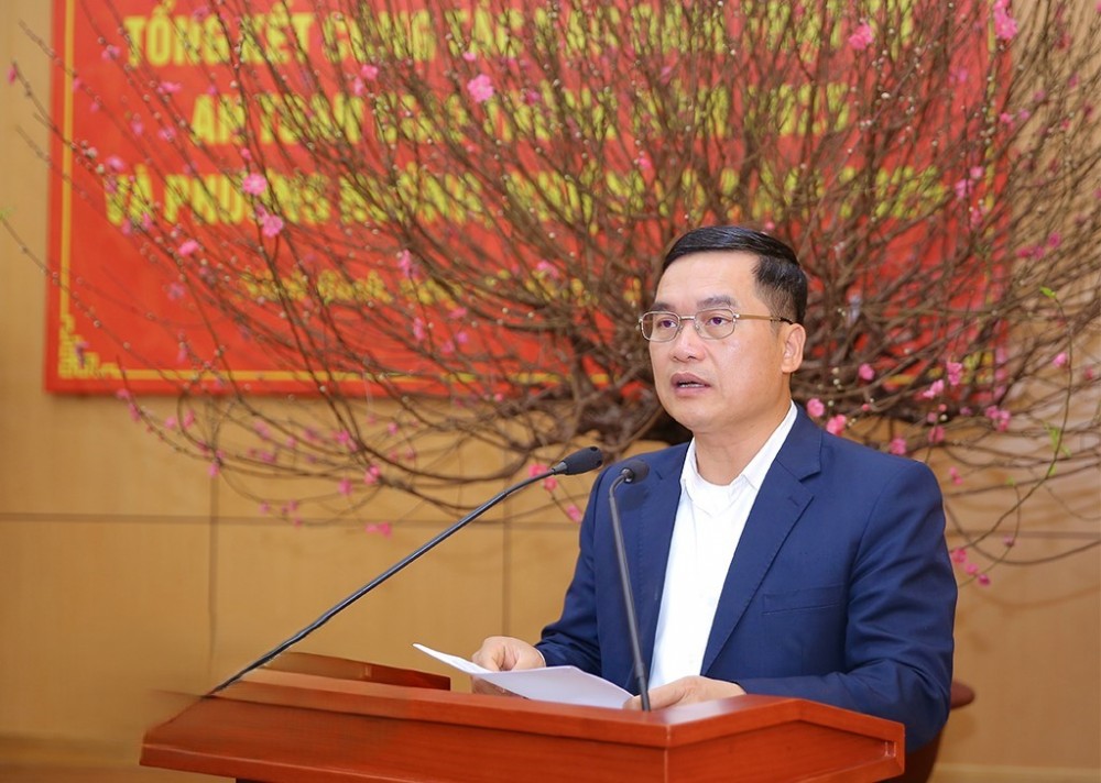 Đại diện Công an tỉnh Ninh Bình phát biểu tham luận tại hội nghị, phân tích thực trạng tai nạn giao thông và kết quả công tác tuần tra, xử lý vi phạm trong năm 2025.